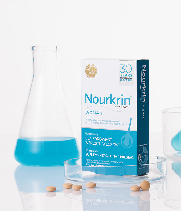 Suplement Nourkrin® z Marilex® powstał na bazie ponad 30 lat badań naukowych nad rolą proteoglikanów w cyklu życia włosa. Stosowany i rekomendowany przez dermatologów, trychologów i innych specjalistów, pomaga przywrócić naturalny rytm wzrostu włosów. Skutecznie, bezpiecznie i bez kompromisów.